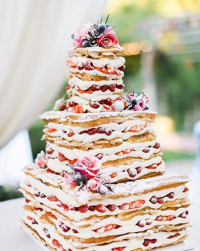 If you and your partner love brunch, then this is the perfect wedding cake for you! Waffles are super easy to stack and always delicious no matter what toppings you choose.