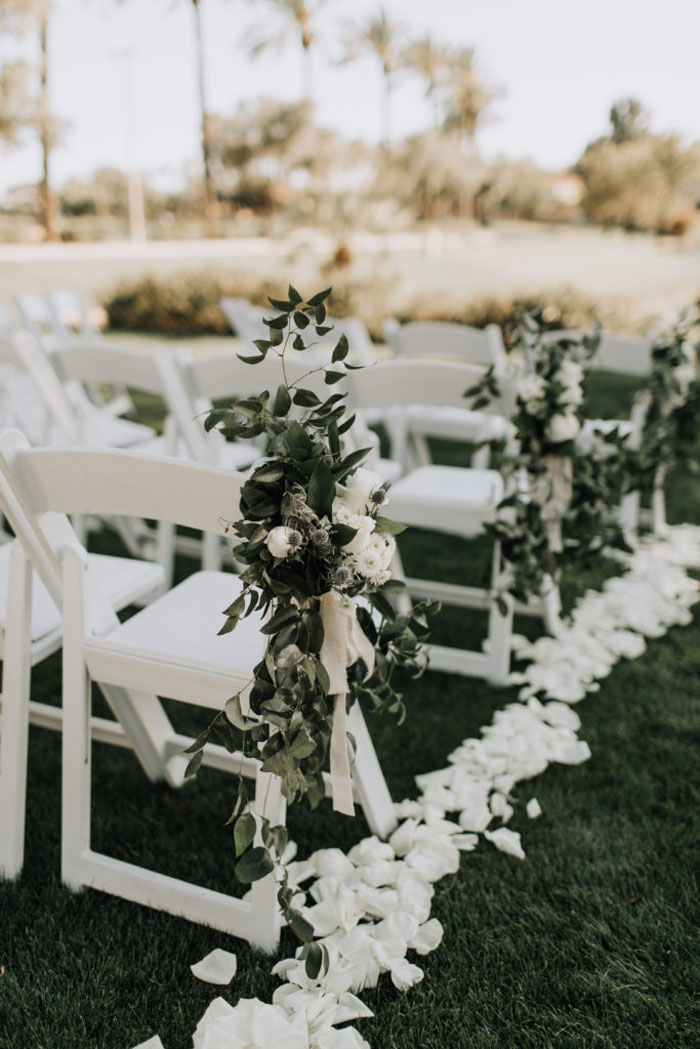 Consider lining the aisle with a small aisle runner and some florals to introduce a pop of colour or keep it neutral and simple as to not upstage the ceremony and bride.
