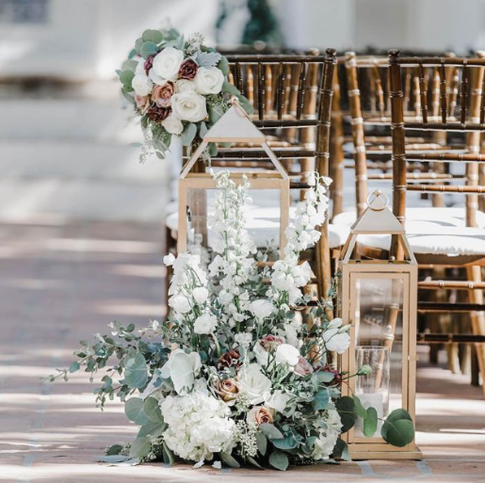 Whether you’re having an indoor or outdoor ceremony, lanterns are the perfect way to introduce some ambience and warmth into the ceremony.