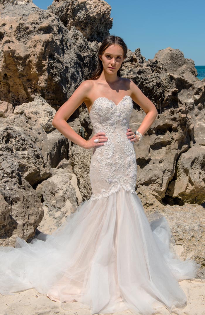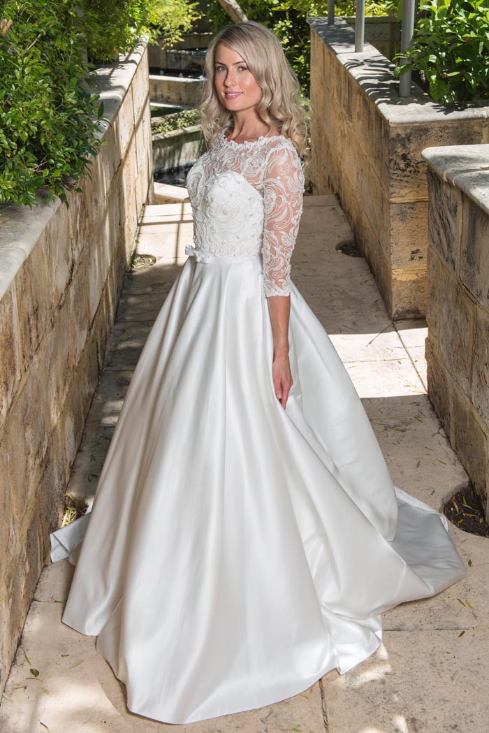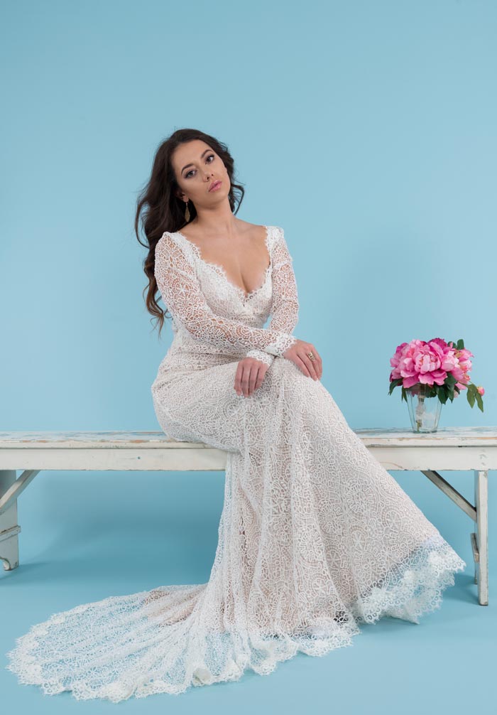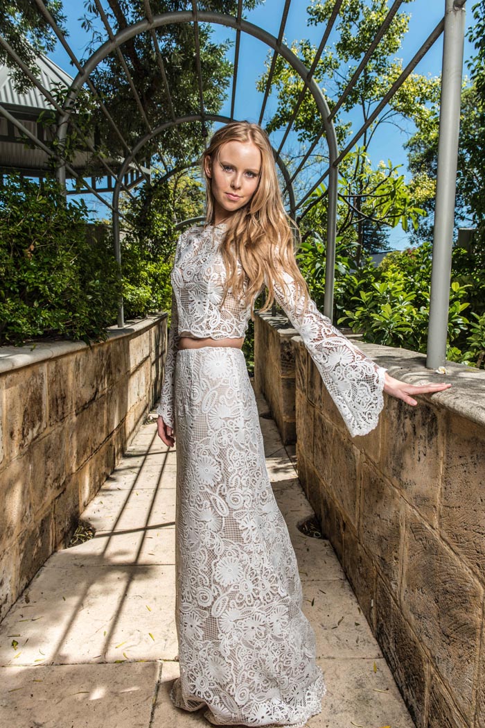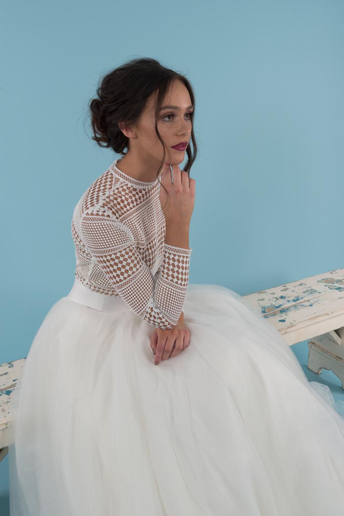 As well as stunning one-piece gowns some of the collection comprises a ‘mix and match’ concept where brides can create their own look. By choosing different lace slips or skirts, worn over a choice of satin under-gowns, and by adding a variety of jackets and belts the bride can create her own unique look for her special day.