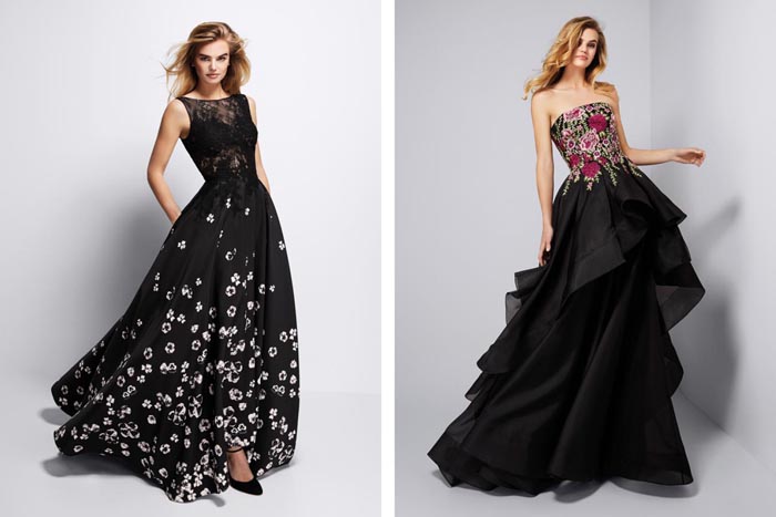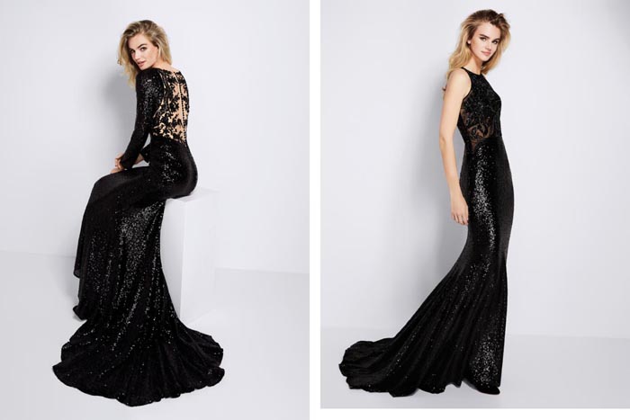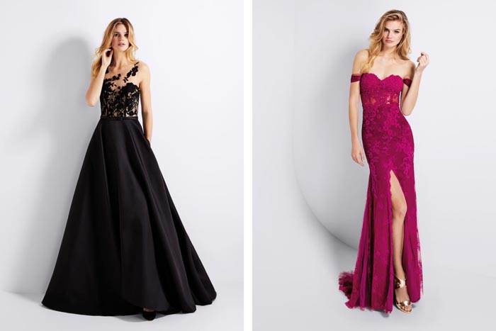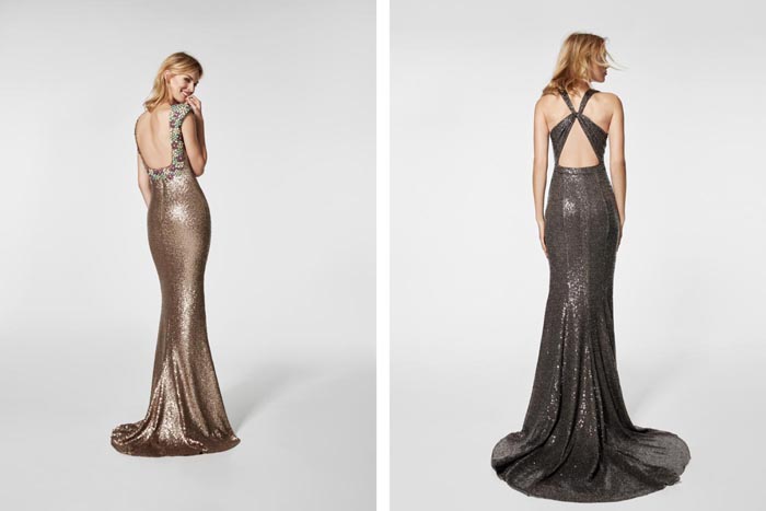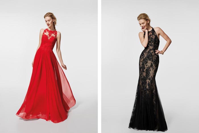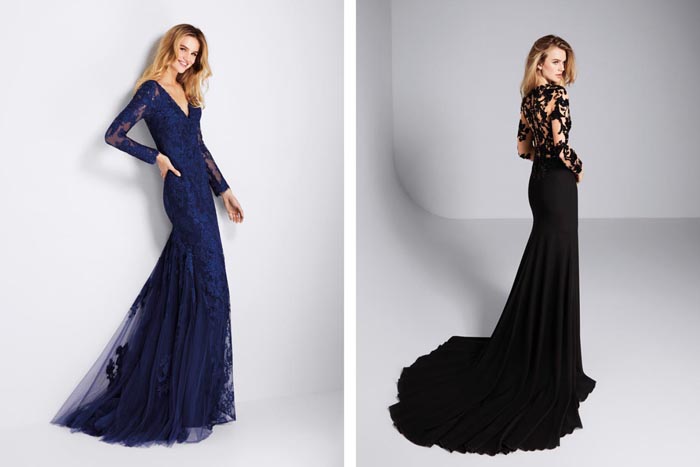 Shimmering designs crafted in paillettes are the latest major trend, as well as printed mikado and tulle embroidered with coloured thread. Open and plunging backs also gain prominence in many of the designs, enhancing feminine sensuality while adding extra sophistication.