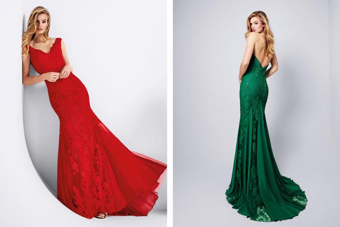 Meet me under the mistletoe! There’s nothing more festive than a full-length gown in the colours of Christmas. Go for emerald green or ruby red: jewel tones are extremely popular this season.