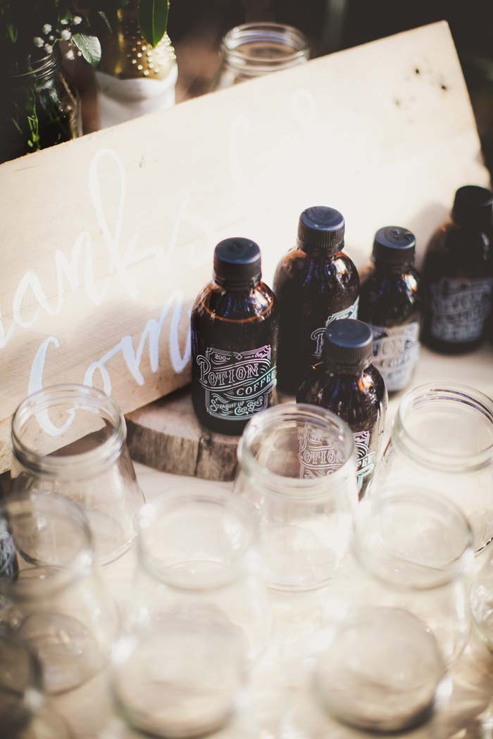 Each guest received a bottled cold coffee brew from Potion Coffee as one of their favours. We did it a little different and decided to thank everyone for coming in the beginning and hand them their favors so they could enjoy them while they were still ice cold, Straight up or with milk and brown sugar.