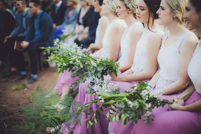 I wanted them rustic, natural and full of greenery. Something that would compliment the surrounding earthy tones of the forest. The bridesmaids had a bouquet of various types of greenery and silvery leaves.