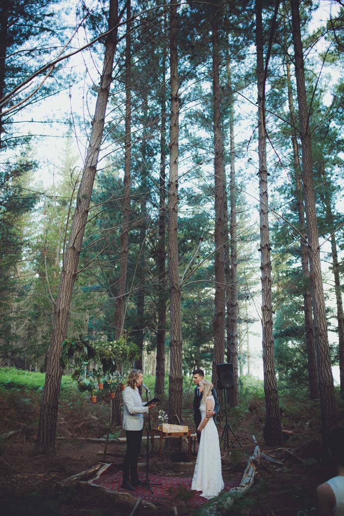 In the forest. under the open sky, the trees made a natural ‘V’ which was perfect place to say I do.