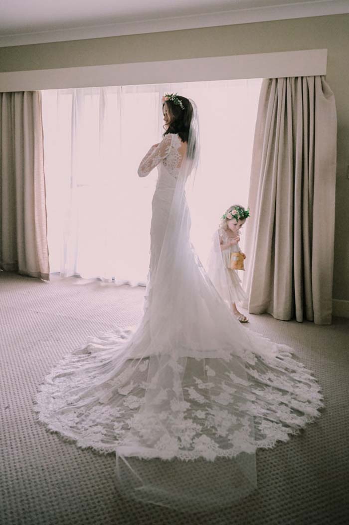 I knew from the beginning that I wanted a lace dress with sleeves – A classic dress. I fell in love with Steven Khalil’s designs but unfortunately they were out of my budget. I searched all over Sydney for a gown before I came across the Essense gown in a brochure. I waited 3 months for the gown to arrive into the store. Once the dress arrived, I tried it on and loved it!