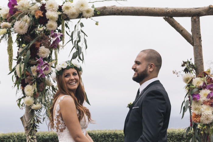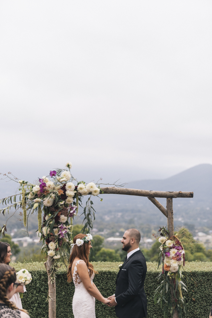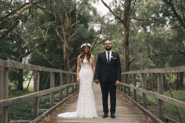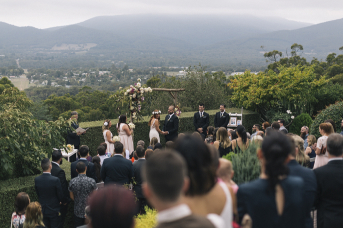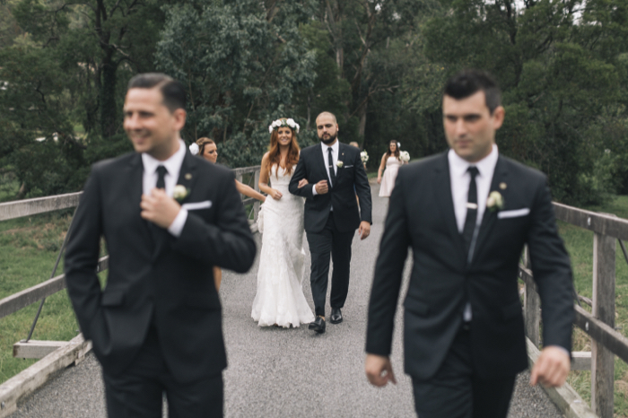 Photography Aleksandar Jason Weddings Videography Andrew Johnson Drone Operator Jai Morrow Venue Mount View Estate, Yarra Junction Hair Emaya Salon Makeup Merton Muaremi Bridal Gown Pronovias Flower Crown Miss Wild Flower Bridesmaid Dresses ASOS Suits Joe Black Styling by the Bride and Groom Festoon Lights Kerr Weddings & Events Festoon Light Stands Feel Good Events Chairs Melbourne Table and Chair Hire Flowers North St Botanical Art and fonts Creative Market Art Design by the Bride and Groom Printing TDC3 Celebrant Shane Bourke Music Bil at Top Shelf DJs Catering ACC Catering Wine Vinomofo Beer Temple Brewing Company Cake Treats for Evie Favours by the Bride and Groom using products from Live In Spirit Rings Hamiltons Jewellery Instagram Printer Social Playground