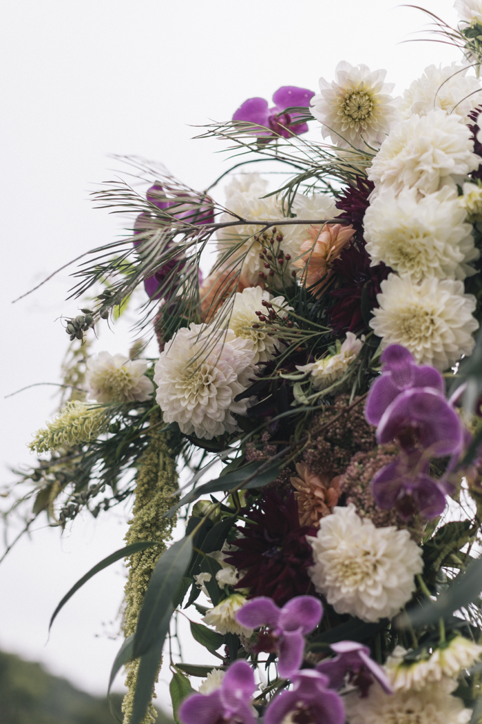 We wanted to add a few little personal touches to the pavillion but wanted to keep it minimal and bring in a few things to compliment the natural surroundings. We did this by sourcing festoon lights for outside and macramé hanging plants and lanterns that were hung from the exposed beams inside, and of course lots of wonderful white flowers and green foliage to keep with the simple and fresh theme we were going for.