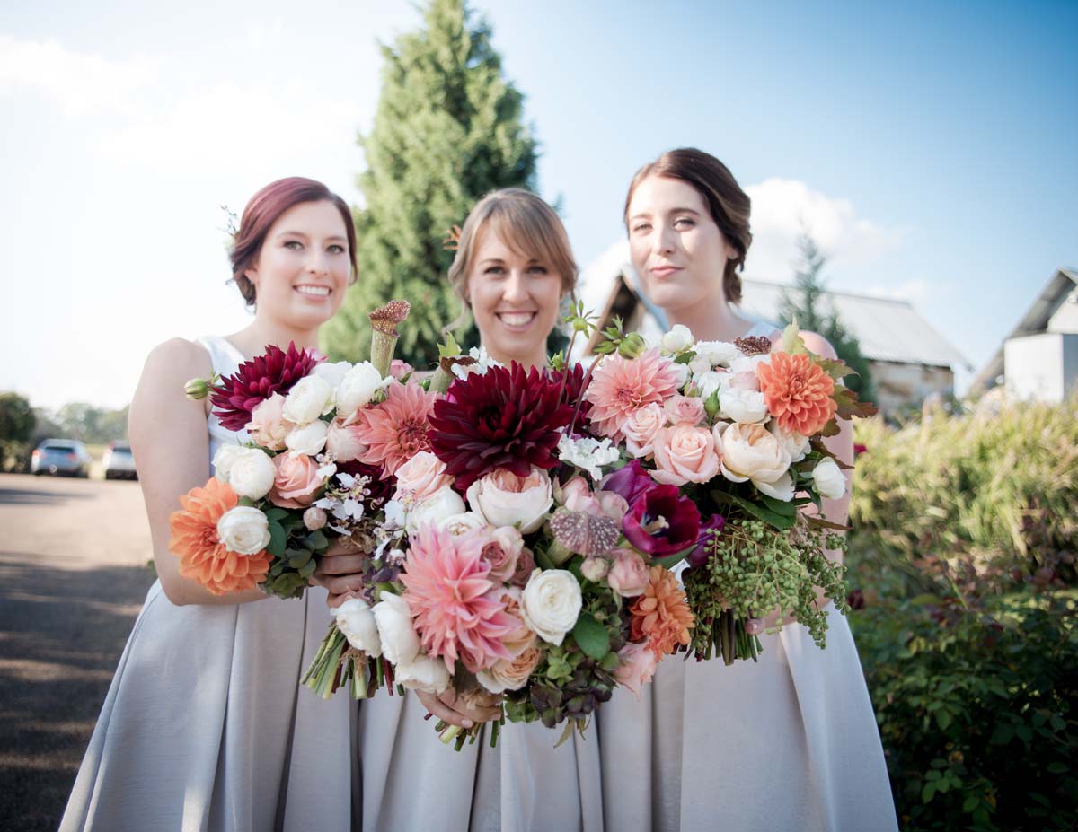 I had a vague idea of autumn brights, and I love dahlias (which happened to be in season). Other than that I gave creative license to the girls at Oh Fleur and they did not disappoint! The result was stunning.