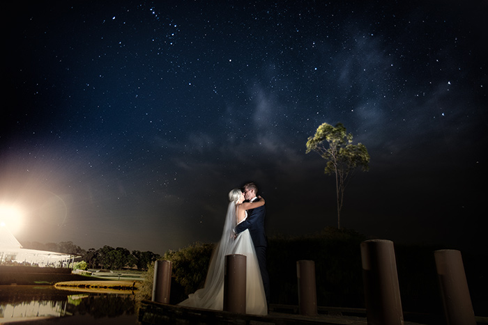 Sneaking out while everyone was eating mains to have photos and drink champagne under the stars just the two of us.