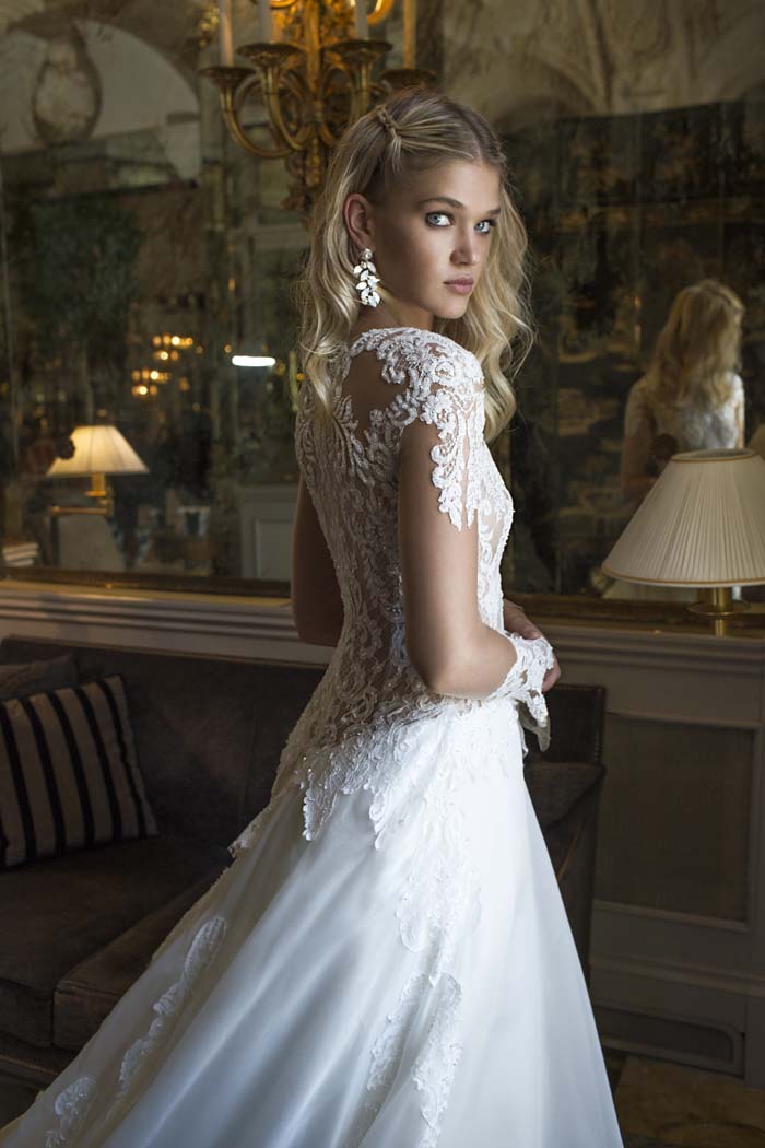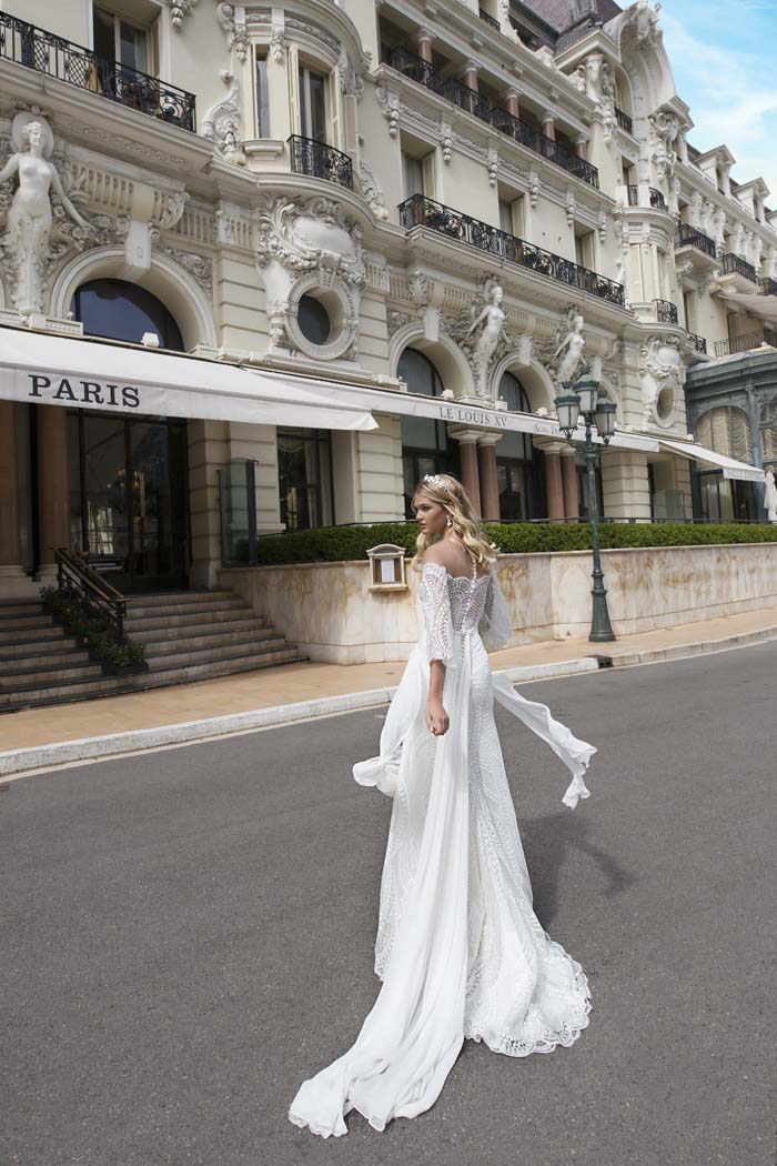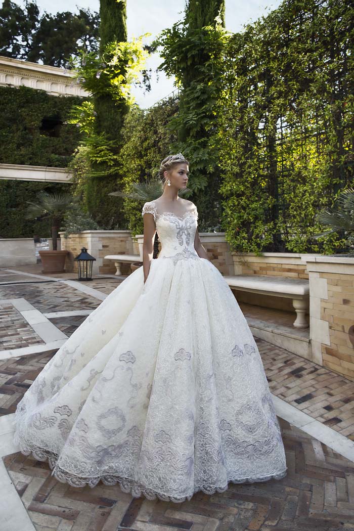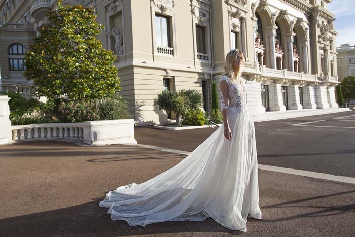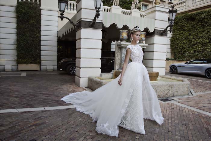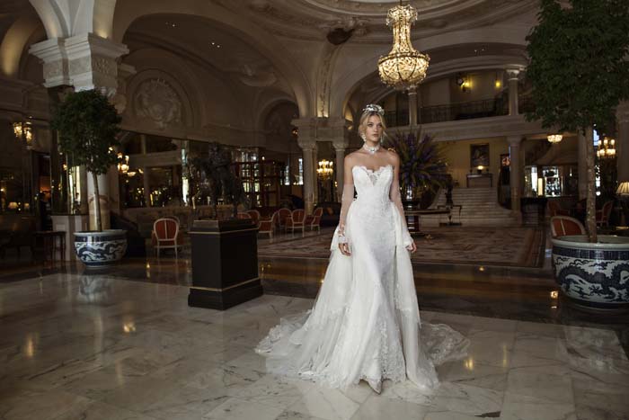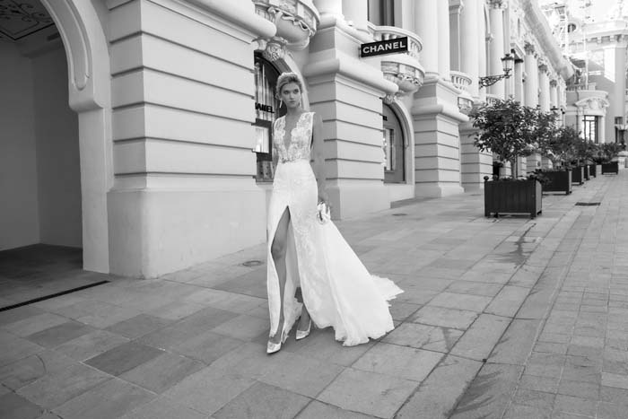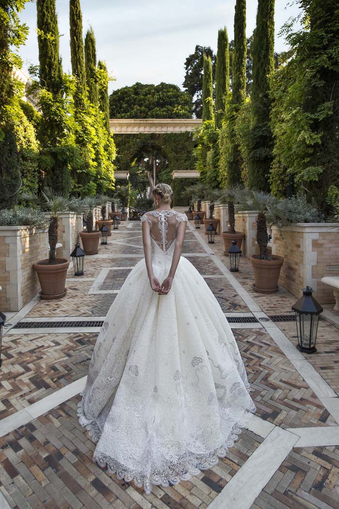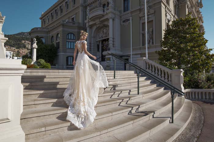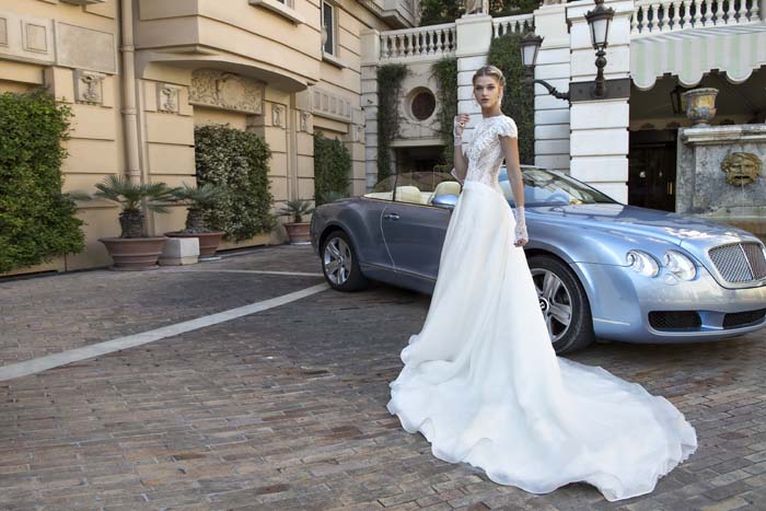 Necklines humeral, tattoo effects to enhance backs and stroking cleavage, soft and voluminous skirts characterised by luscious layers. Embroideries, laces and special materials are combined together, according to designer’s idea of elegance, sometimes magical and dreamlike, sometimes ethereal. From absolutely innovative slipped dresses, the hyper-most sensual modern sirens, to the princely models, nothing is obvious or already seen. Each piece reflects the romantic soul and the imprint of a skilful hand and glamour.