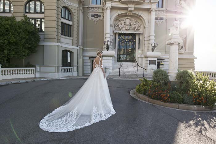 Alessandra Rinaudo’s bride shows a natural and elegant beauty, never being too much. She is a fine lady, glamour, but first of all she is the protagonist.