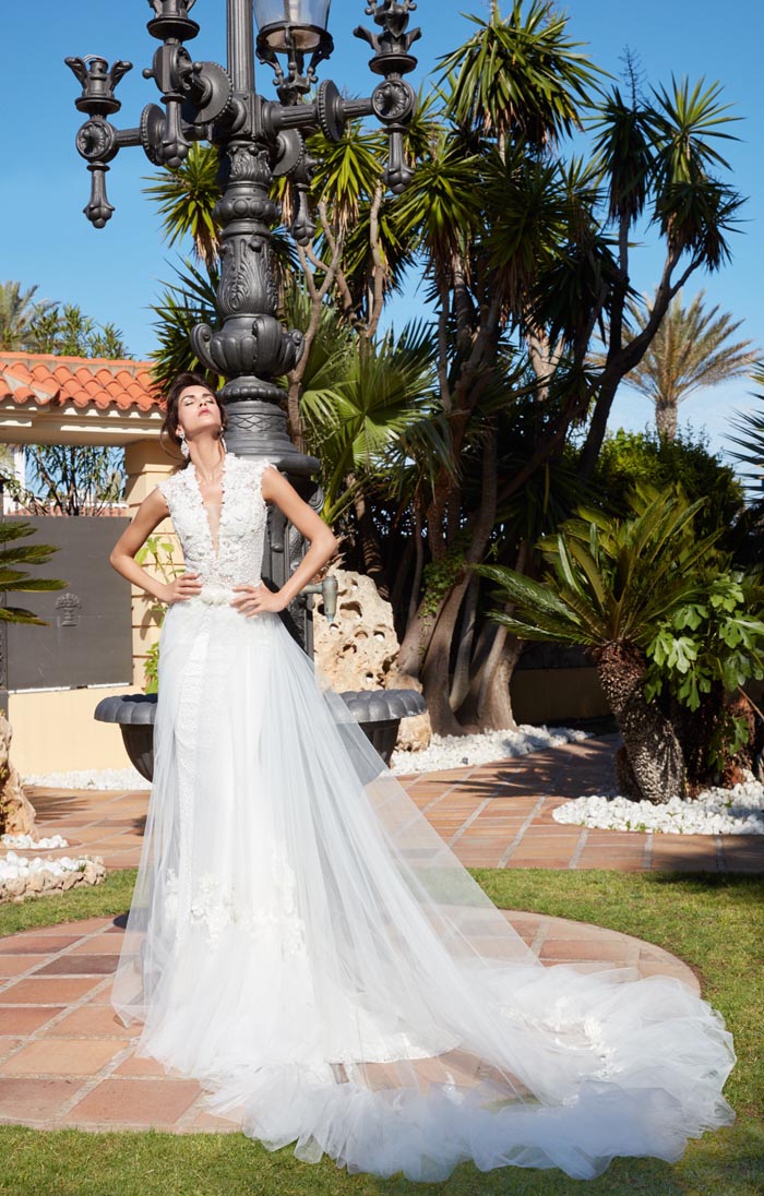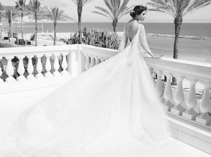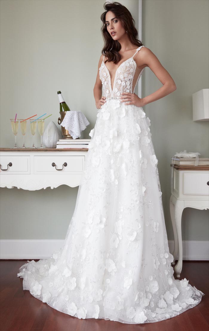 The Alessandra Rinaudo 2018 collection features unstructured feminine bodices with a “tattoo effect”, flowing skirts and Alessandra Rinaudo’s iconic princess ballgowns.