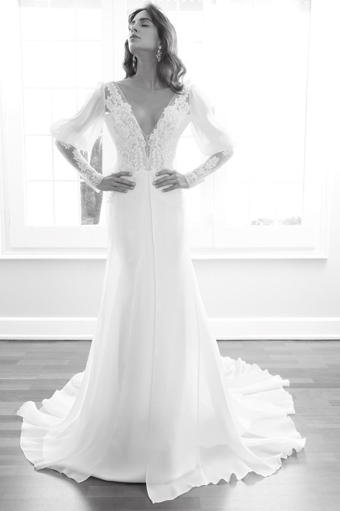 The wedding gowns are designed with a bigger picture in mind: envisioning how the wedding day fashion will work together. Alessandra Rinaudo’s collection of bridesmaid dresses, flower girl frocks and mother-of-the-bride gowns all feature alongside the bridal fashion. Each element expresses a desire to discover and represent the beauty in all its forms and aspects.