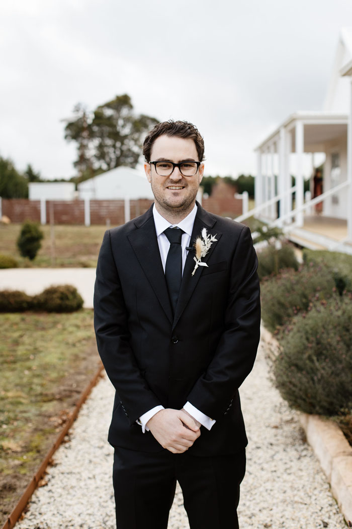 The winning wedding plan took place on June 20th at a gorgeous property in Eaglemont, Victoria that the pair hired through AirBnB. “The morning of the wedding was chaotic,” laughs Amanda. “Our friends re-arranged furniture on the back porch and made a make-shift alter!” Due to COVID-19 restrictions, the pair didn’t have any bridesmaids or groomsmen but that didn’t stop them from dressing to the nines and looking absolutely dazzling! Matt looked totally dapper in a tailored Hardy Aimes suit!