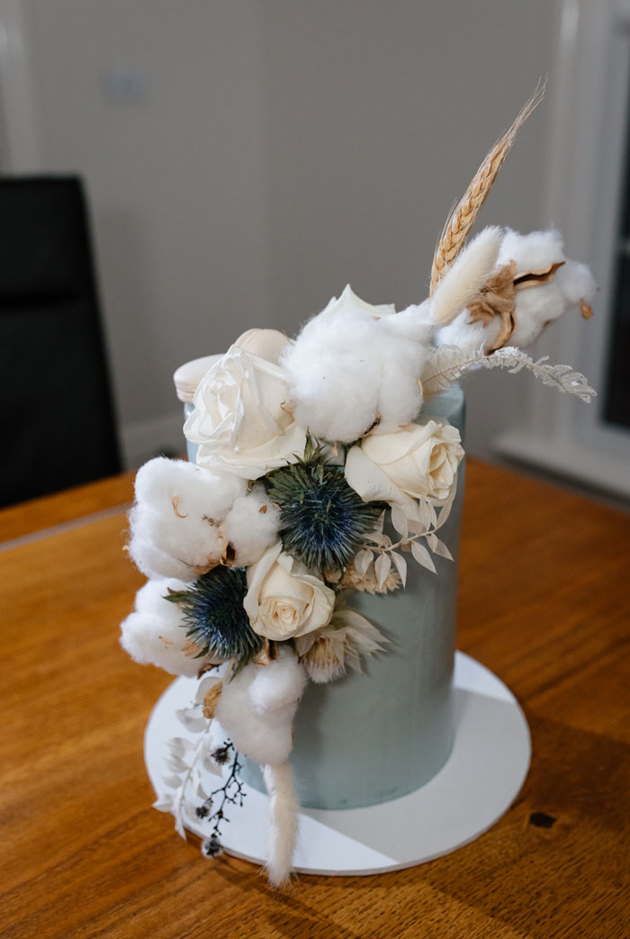 The reception was also held at the Eaglemont property where Amanda and Matt put one of their friends in charge of the reception decorations and the dance floor. Their breathtaking cake was made by Boutique Cake Art and looked like a beautiful piece of edible art. The drool-worthy creation featured lemon and blueberry flavours and was adorned with delicate pieces of sea holly and cotton.