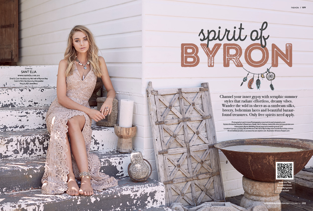 Cover Credits // Photography Lost In Love Photography Gown Erin Clare Couture Long Necklace Chrysalini Shell and Coin Necklace Ha’veli of Byron Bay Styling Kimberlee Kessler and Rosemary Slade Hair and Makeup Janice Wu Bridal Videography Byron Bay Visual Location and Props Ha’veli and Ha’veli of Byron Bay