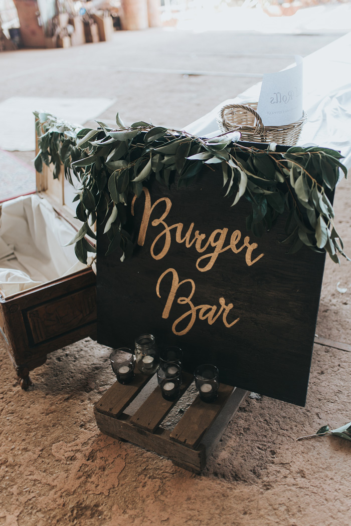 The couple had a sit down meal at the reception. “We had a burger bar and a sangria station and an old working tub full of beverages,” says Candace. Along with most of the decorations, the cake was made by one of the couple’s closest friends. The naked style cake featured vibrant red roses and fresh strawberries.