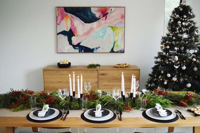 Australia has some beautiful flora. What better way to give your Christmas table a distinctly Australian feel than to include some of the best native blooms. One of our favourite Australian inspired styling ideas is to use eucalyptus leaves as a table runner. Add in some candles and Christmas trinkets like silver baubles to complete the look. Other Australian flora that makes for great table decorations include gum leaves, tetra nuts, white waratah and banksia varieties. Arrange the flora in a variety of jars, pots or vases for an eclectic, yet Australian look.