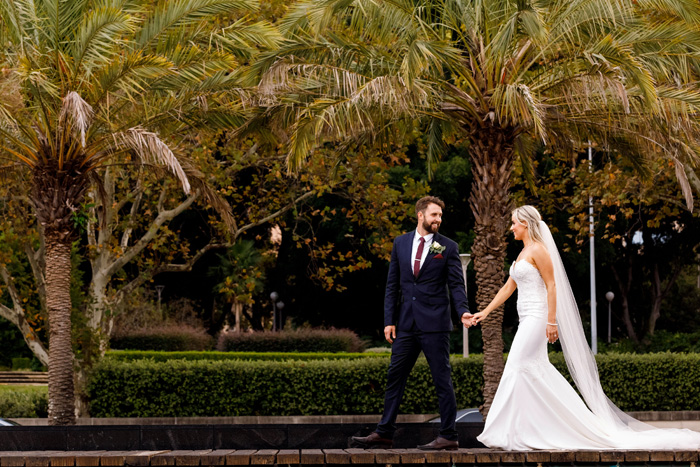 Photographer: Florent Vidal / Stylist: Wedding Knights Sydney / Florist: Wedding Flowers by Jody / Ceremony Venue: Cook and Phillip Park, Sydney / Reception Venue and Cake: Bodhi Restaurant Sydney / Bridal Gown Designer: Pronovias / Bridal Boutique and Veil: Luv Bridal Crows Nest / Bridal Shoes: Billini / Bridesmaids Shoes: Novo Shoes / Bridal Accessories, Engagement Ring and Wedding Bands: Gregory’s Jeweller’s / Bridesmaids Accessories: Colette by Colette Hayman / Makeup: Ms Renee May / Hair: Ms Chantell Piell / Tan: Gorgeous Glow by Mia / Bridal Robe: White Runway / Groom’s Outfit and Accessories: Roger David / Groom’s Shoes: Tarocash / Groom’s Barber: Blends and Brothers, Rouse Hill / Entertainment: Impressions DJs Sydney / Celebrant: Ms Marlene Shipley