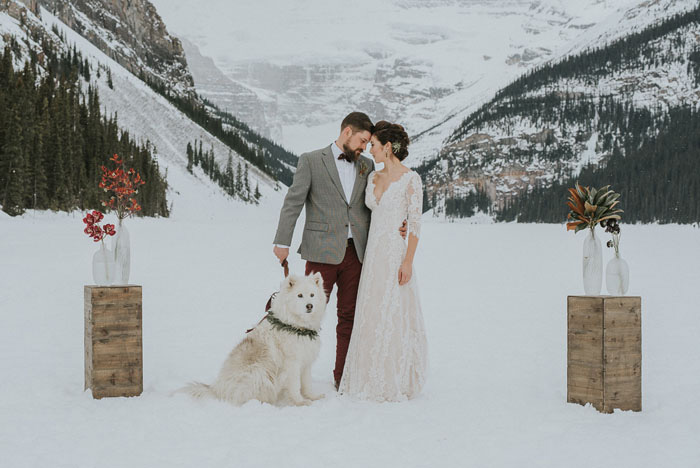Green, ivory and gold is a classic and timeless colour scheme for your winter ceremony. Let lush greenery be the champion of your palette with this look. Add a touch of winter royalty by incorporating gold and ivory accents throughout your decor. Light florals and candlesticks are always a gorgeous addition. These colours perfectly fit into a wintery aesthetic without being over the top.