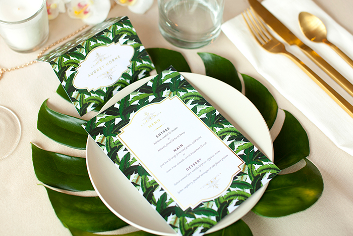 Nature is always a source of inspiration for weddings, but it’s more popular than ever right now. The colour ‘Greenery’ is Pantone’s Colour of the Year for 2017, and all things green and plant-related are showing up everywhere. People are increasingly choosing botanical prints instead of florals or other patterns for all their wedding stationery. Of course, this is also easy to match to your decor, whether you’re planning an outdoor garden wedding or plan to bring the outdoors in with plants and sprigs of greenery. You don’t have to take this trend literally, though. Consider just using dark green colours in your on-the-day wedding stationery and as part of the overall colour story of your day.