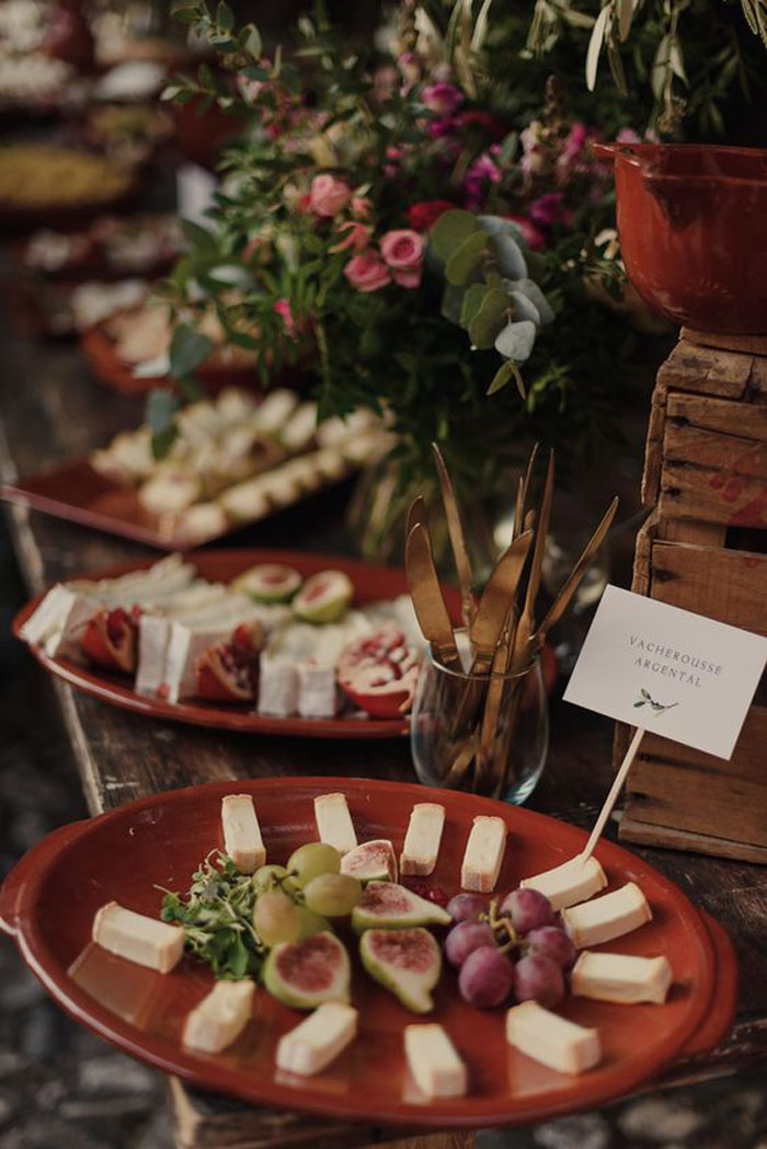 For the bride who wants to serve wedding cake followed by a light snack, this individual tasting plate of cheese, grapes and fig is perfect! This is a wonderful way to finish off your evening over a smooth glass of wine and plenty of good times.