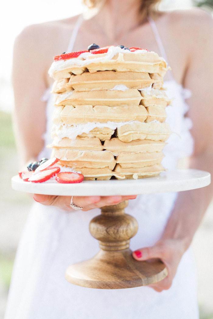 Now, let’s be real—no wedding dinner is complete without dessert! Delight your sugar-loving guests with an indulgent waffle stack for their after-dinner treat. This is a pretty unique dessert option and will absolutely thrill your guests as they dive into this pile of pure deliciousness!