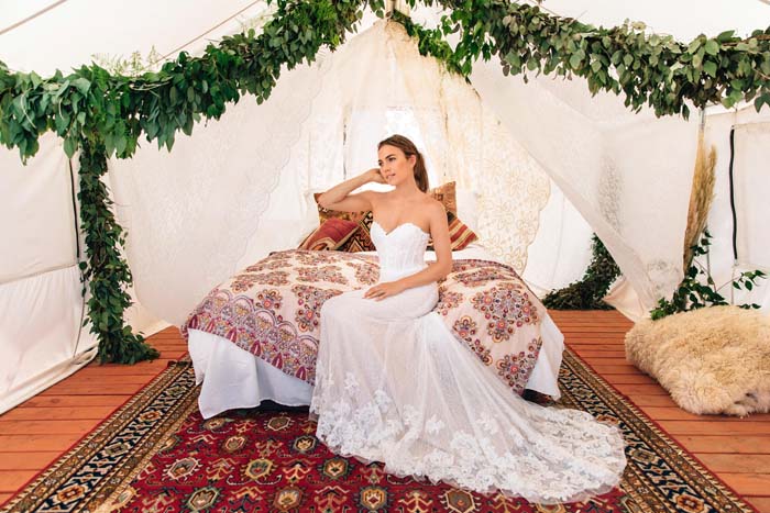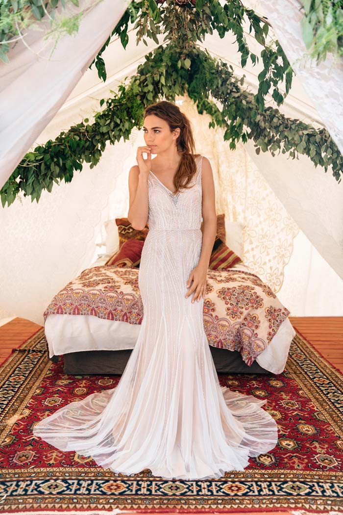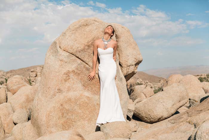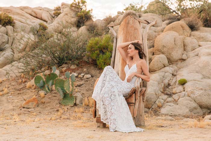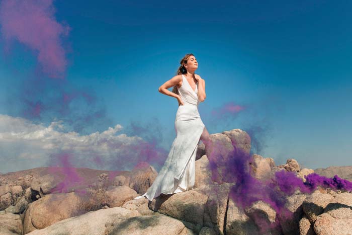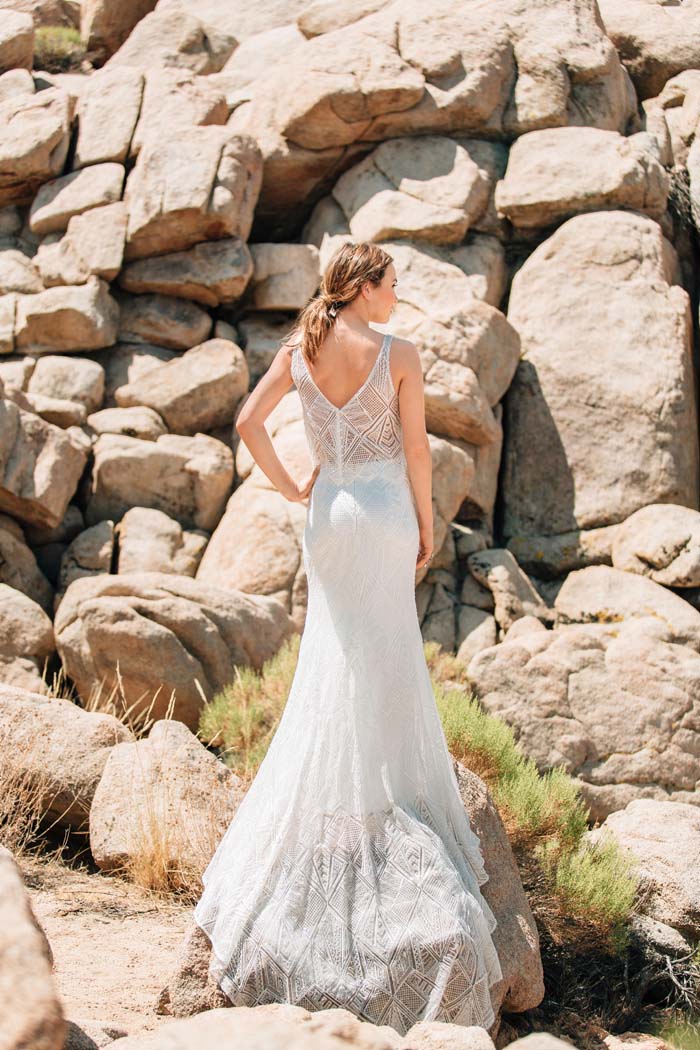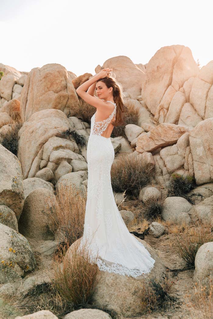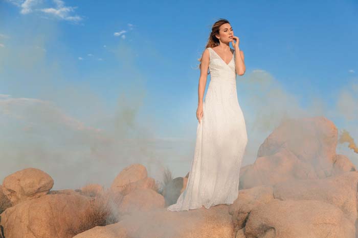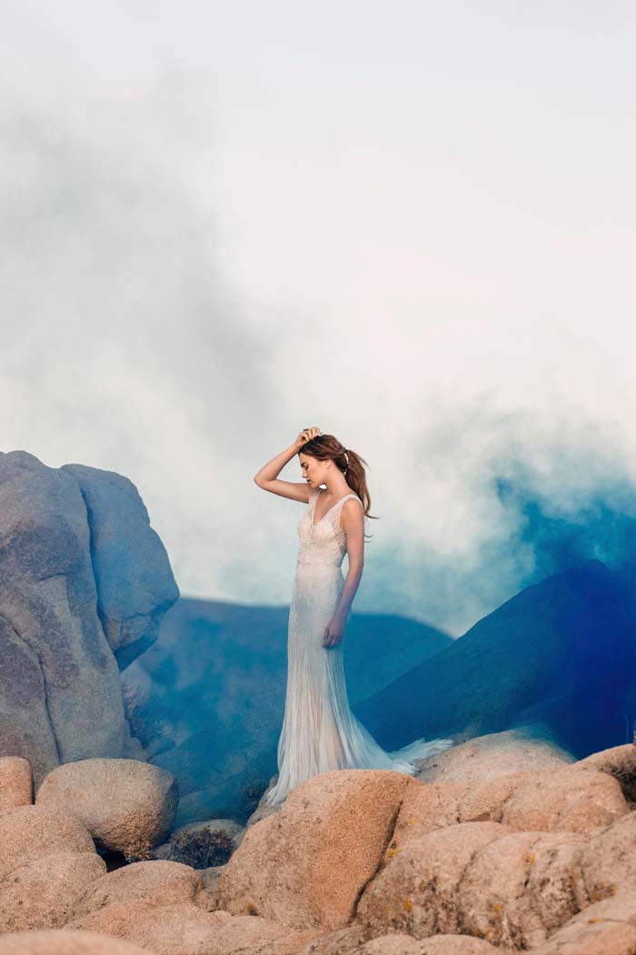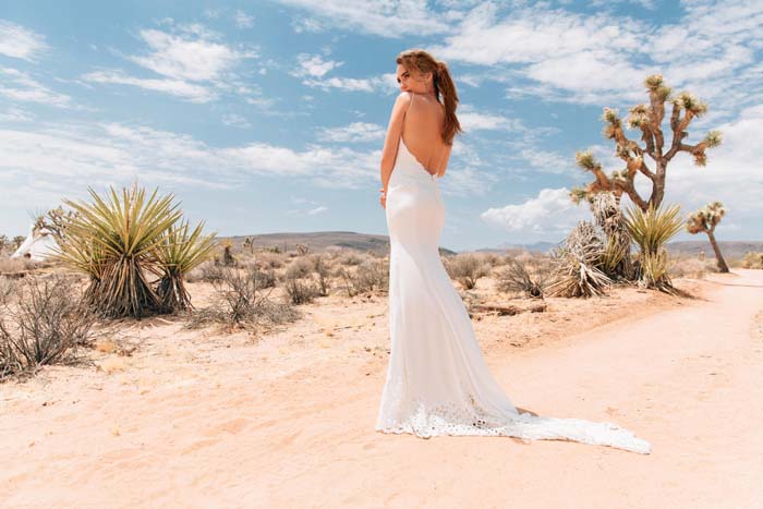Tradition meets tomboy cool with this edgy new collection from Willowby by Watters. Set against a rugged, cactus-dotted terrain, the gowns are strong, minimalist and arty.