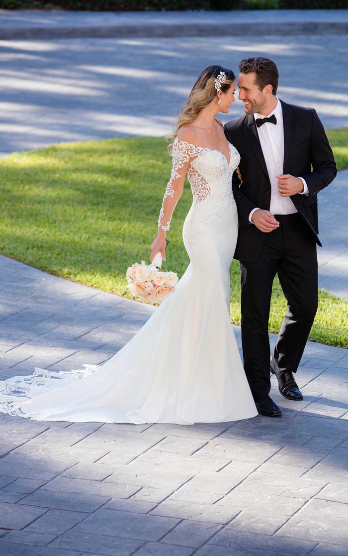 From long and lacey to off-the-shoulder, sleeves are a major trend this season. Stella York’s dresses feature off-the-shoulder straps and long, lace sleeves adorned with beadwork. Delicately beaded cap sleeves also have a stunning presence this collection.