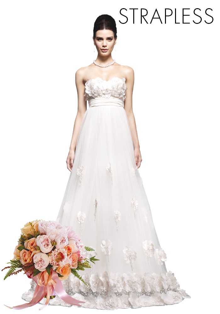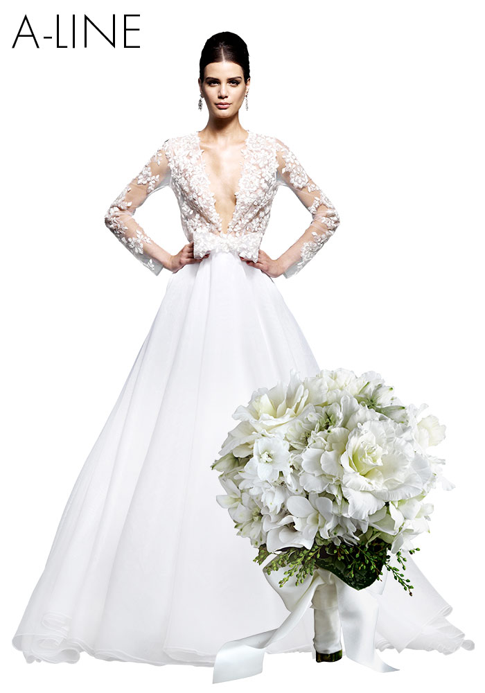 The bridal bouquet is one of the most important bridal accessories. Chosen with care, your bouquet will provide the starting point for all your wedding flowers. The style of your gown should dictate the best shape of bouquet for you. We go through six popular dress silhouettes and the floral styles that compliment them!