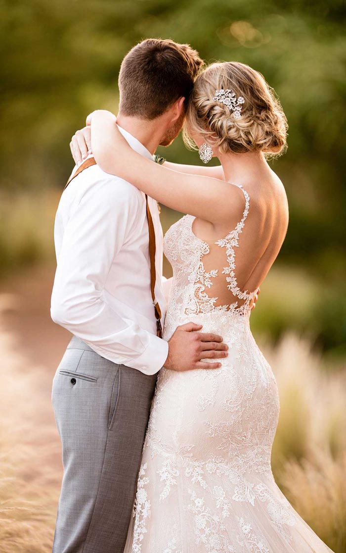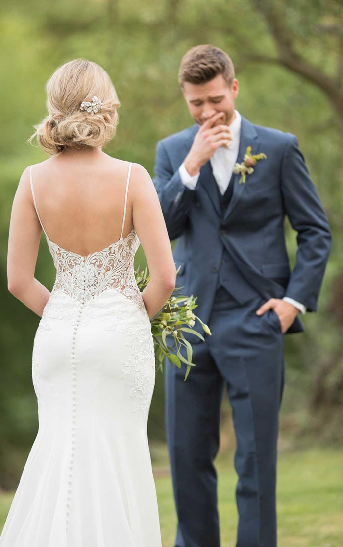 From bold beadwork to thin, shoestring straps, strappy backs are everywhere this season! Essense of Australia’s fresh take on straps is a simple way for a bride to add subtle sexiness to her wedding dress.