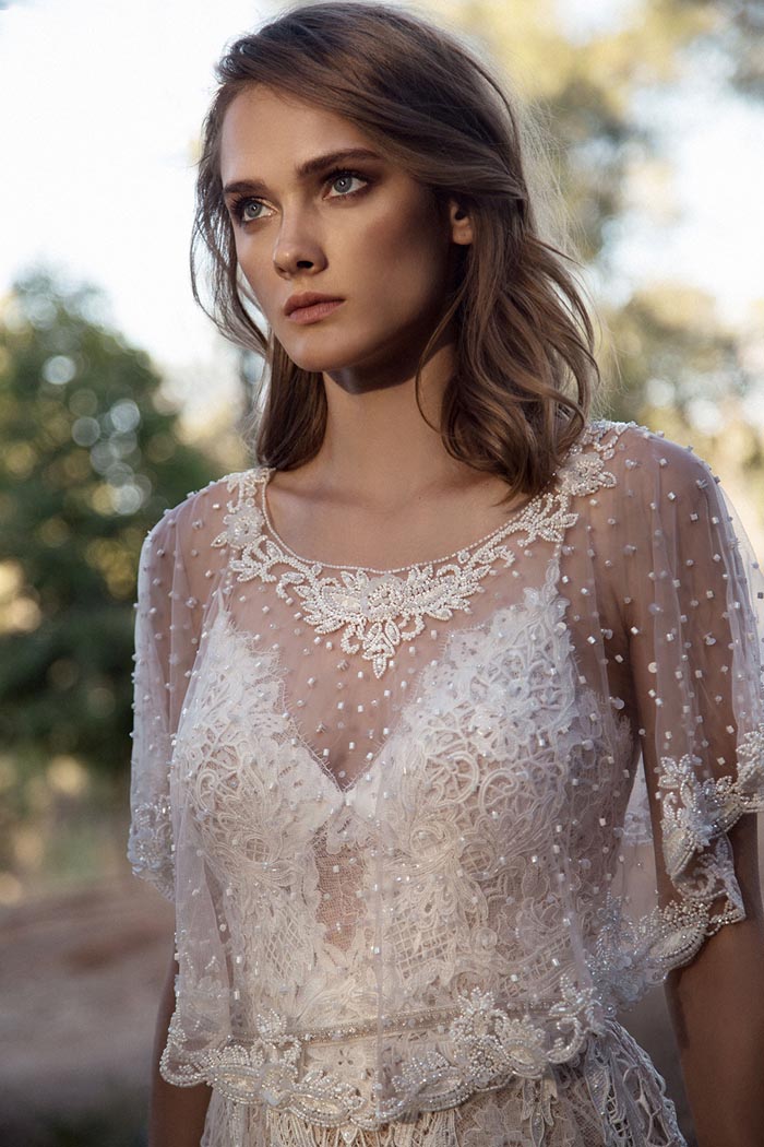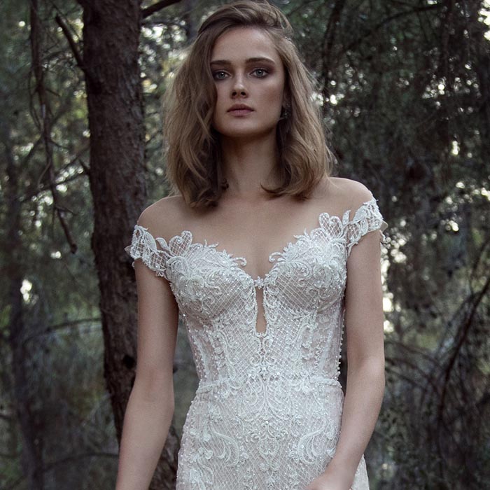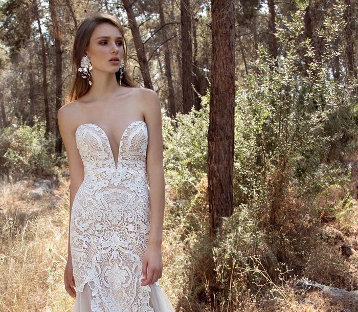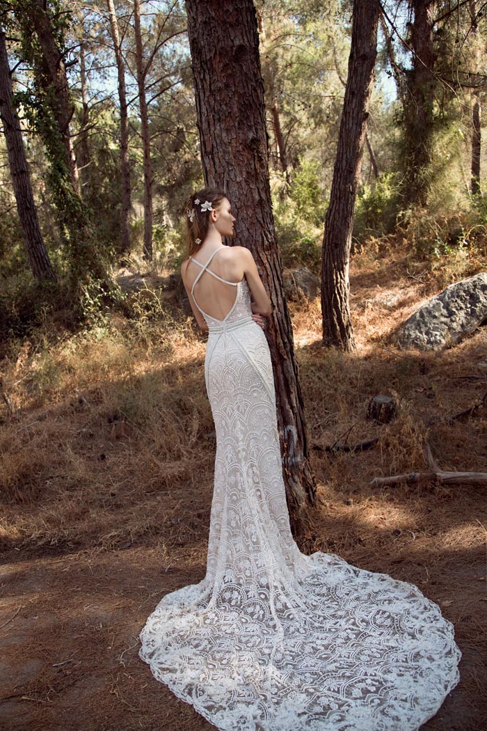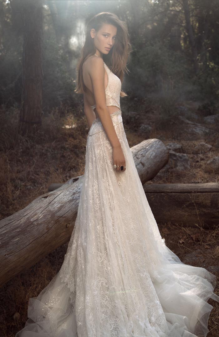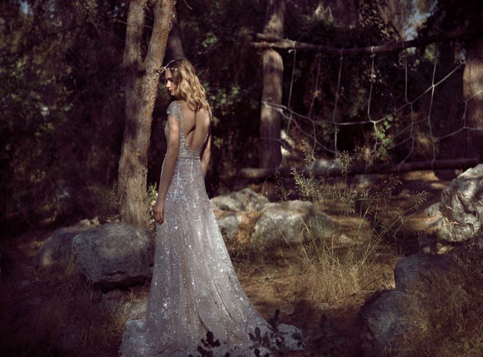 ‘GALA no. IV’ is a return to the bohemian roots that inspired the first GALA by Galia Lahav collection. Unique patterning, statement sparkle, and tie-up details lend classic silhouettes new life in this romantic yet sexy collection, with Galia’s hand evident in every plunging neckline and statement open back. Flirty sheerness and cut-out details offset the sweetness of folksy laces and floral motifs, making this collection as sultry as it is ethereal.