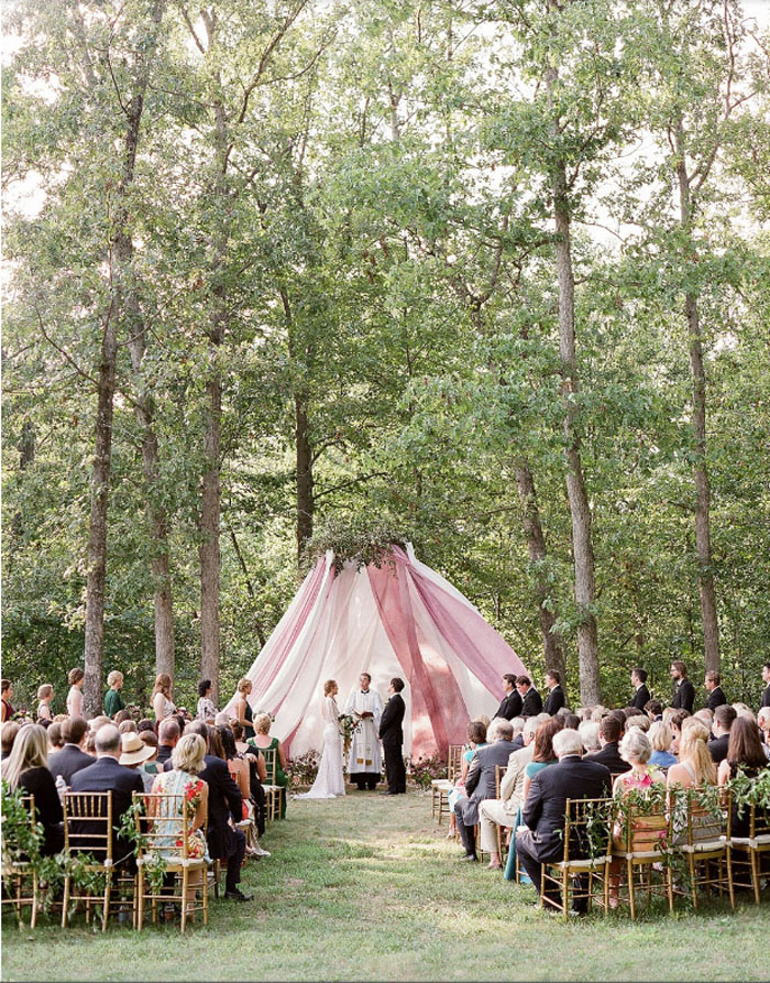 Similarly, an alternate altar idea is to decorate your backdrop with your vows to one another! This uber sentimental option can easily be DIY’d by sanding, staining and then painting your vows onto a large piece of wood. This touching tribute to your new life as a married couple is sure to have your guests grabbing for their tissues!