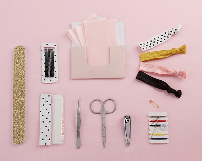 It’s important to remember all of the little things that will make a big difference on your wedding day! Don’t forget to include the absolute essentials such as bobby pins, band-aids and hair elastics. These necessities in day to day life are often overlooked when it comes to such a monumental occasion. But, they are completely crucial to include in your bridesmaids survival kits!