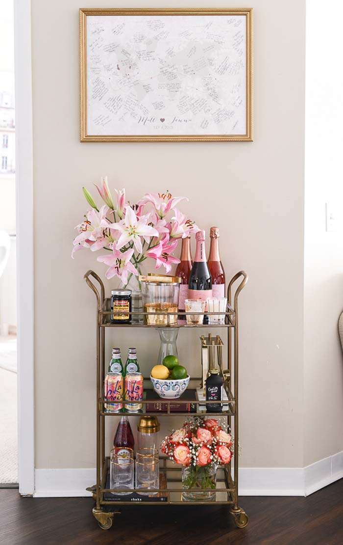 Bar carts are incredibly versatile and can be made from out of just about anything. This means they are easily adaptable to any shape and style. From adding a bit of colour to a basic utility cart, to getting creative and using a laptop desk or even an old vintage record player, the possibilities are endless. As long as it can serve its purpose, feel free to get as creative as you like with what you use as a cart.