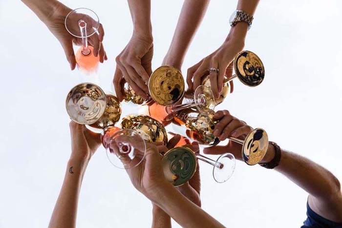 A good colour scheme can tie your whole bar cart together. The cart, glasses, decorations and background should all coordinate to give this centrepiece of your NYE celebrations extra wow factor. The colour of your drinks, or bottles of alcohol can be a great starting point for a colour scheme. Another way to approach it is to use a classic NYE colour scheme. Black and gold are typical NYE colours and are easy to incorporate into accessories on your bar cart.