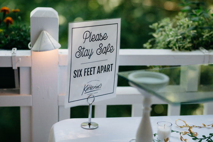 While we’re in the midst of a global pandemic, it’s all about space when it comes to choosing a wedding venue. A garden venue is a perfect choice as it offers a spacious and open option so that all of your guests have room to socially distance. If you want to gently remind your guests to keep their distance from one another without sounding like a broken record throughout the day, prop cute little signs up around the venue!