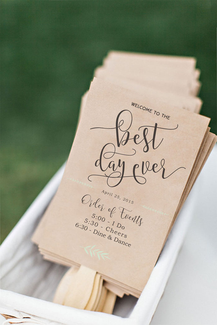 Just as garden weddings can turn unpredictably cold, they can also be unseasonably warm. If it’s looking like your wedding day is going to be blessed with glorious sunshine, prepare each of your guests with a sweet paper fan to keep them cool. Not only will it keep everyone comfortable during the ceremony, but it’ll also be a super cute wedding favour!
