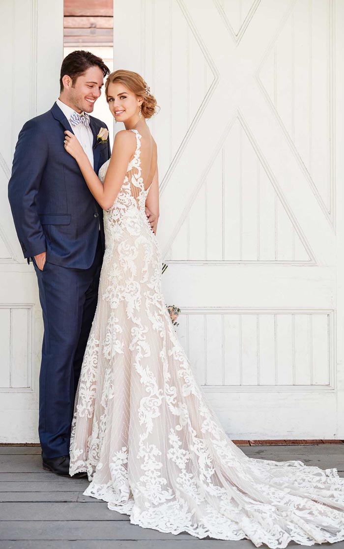 Inspired by a floral garden on a dewy, spring morning, Martina Liana’s new collection features an abundance of floral details. From exquisite floral laces to floral appliques on skirts to three-dimensional floral design elements, the romance of a floral garden is evident throughout many of the gowns this season.
