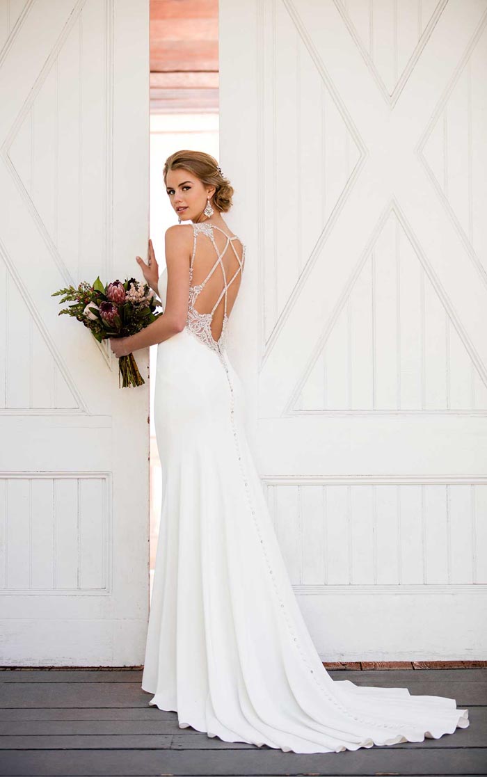 Perfect for the bride in search of a no-fuss gown, the clean and simple silhouettes within this collection are sleek, chic and wonderfully-modern. Constructed with feature seaming, the visible lines on the gown shape the body, creating and enhancing curves, giving brides the perfect fit.