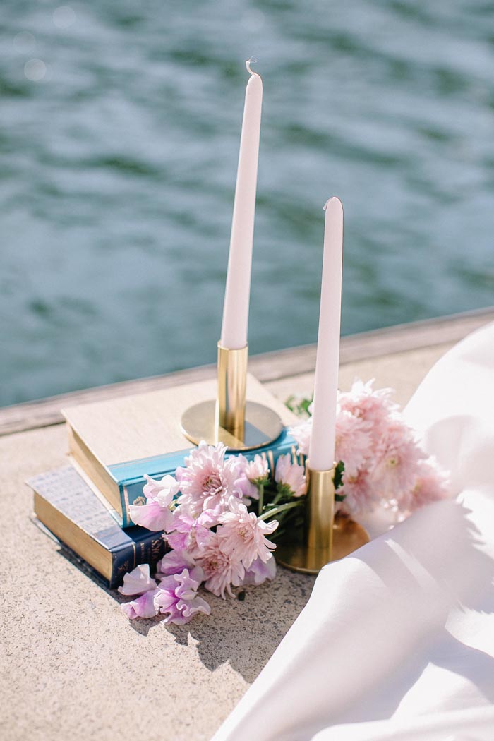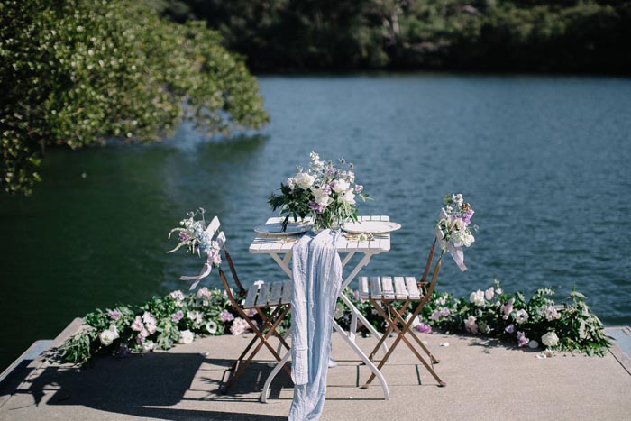 This lakeside elopement styled shoot by lilelements is an intimate picnic for two.