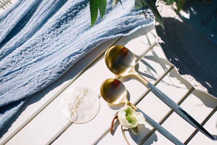 Crisp whites paired with a dreamy pale blue hue and just a few flecks of lilac create a fresh colour palette for the styling.