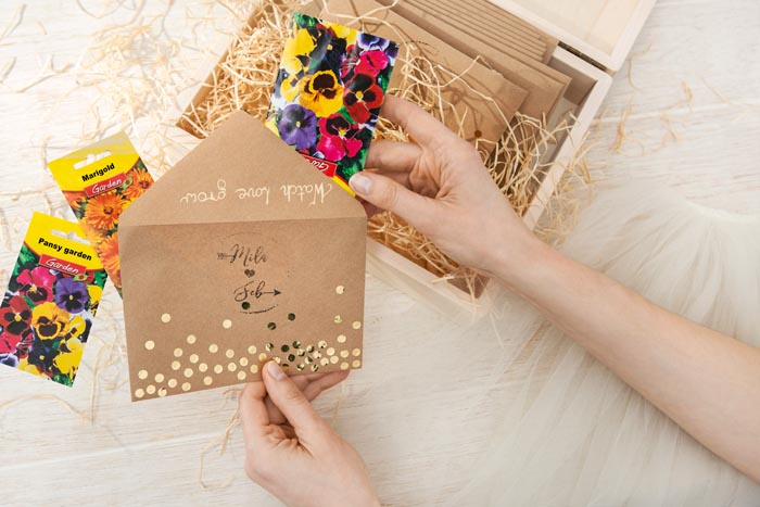 4. Simply pack the envelopes with sachets of different flower seeds.