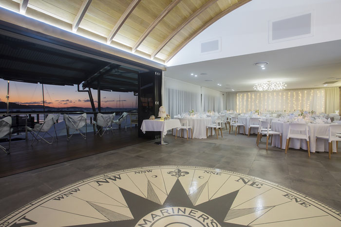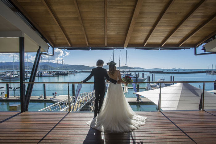 Our venue is a function venue, custom designed to cater for the booming Whitsunday wedding industry and in keeping with our nautical surroundings. Located in the heart of Abell Point Marina, the stunning waterfront view from the expansive balcony is stunning both day and night. As the sun sets over the Whitsunday islands the twinkle of the yacht lights reflection of the moon on the water, make for the perfect reception location.