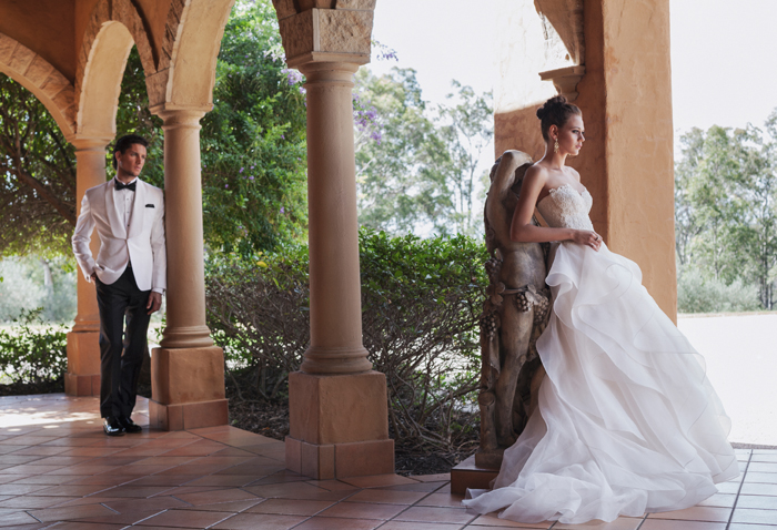 Gown Karen Willis Holmes Jewellery Fairfax & Roberts Groom wears Montagio Groom’s Shoes Golden Shoes Photography Justin Aveling Stylists Kimberlee Kessler & Rosemary Slade Photographer’s Assistant Paul McMillan Hair Stylist Rhiannon Dimaria, Simon Bright Salon Makeup Artist Julie Elton