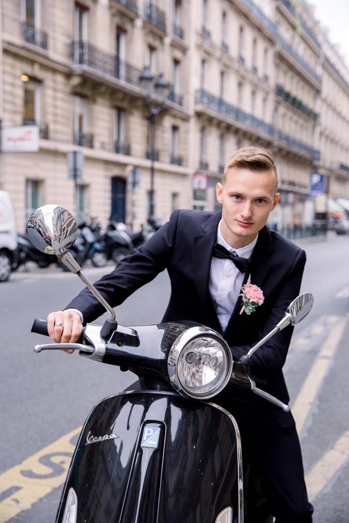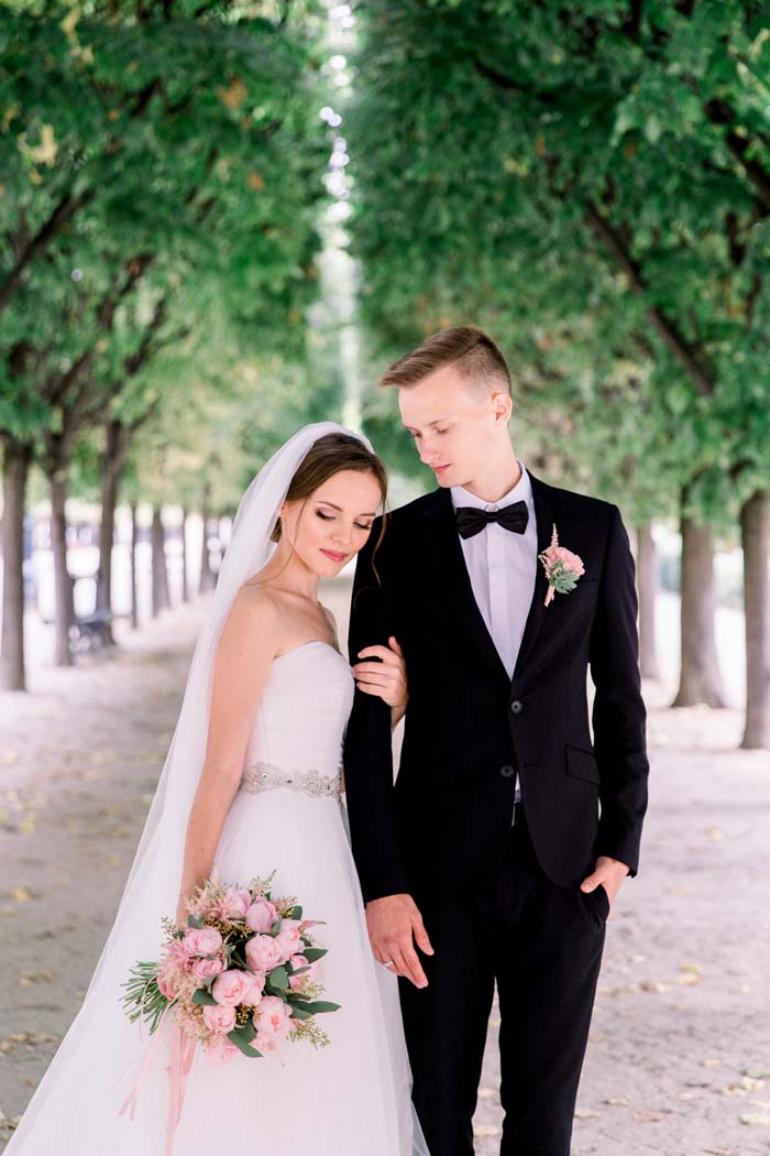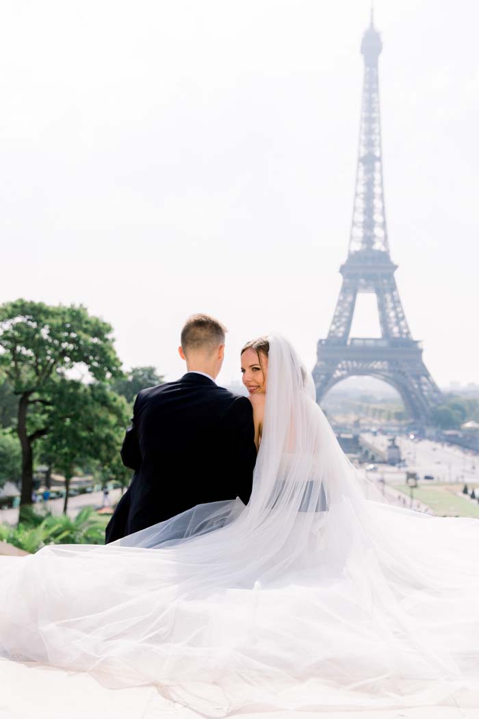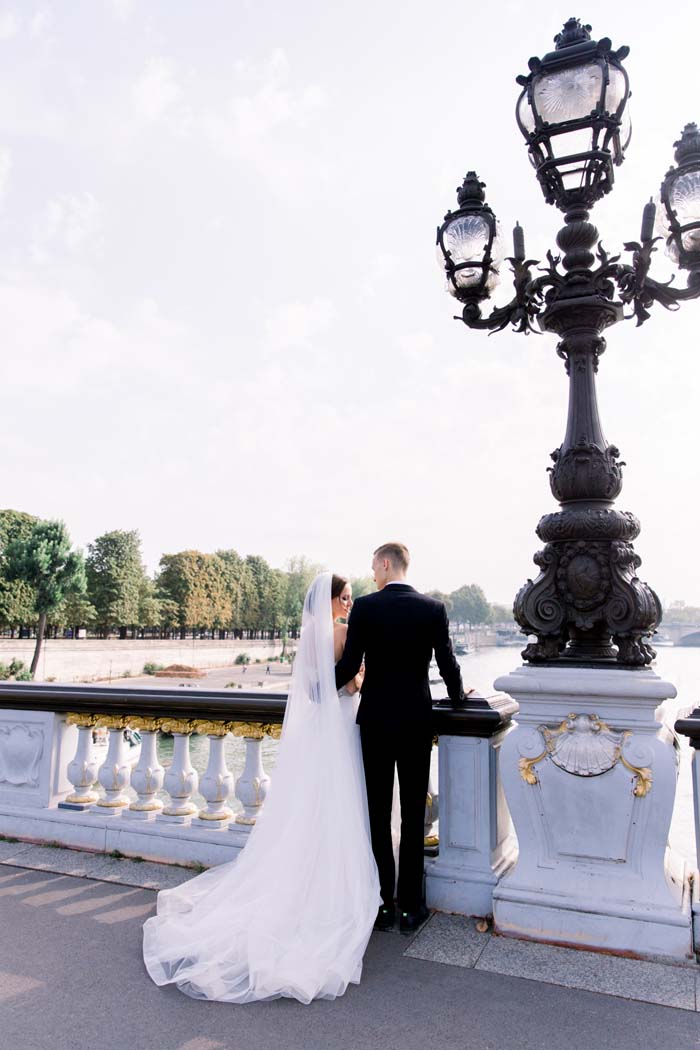 The couple believe that the most important part of an elopement is having a good wedding photographer. Without guests or family present, photographs are the best way to share the day with loved ones back home. The couple chose to capture photos in the Palais Royal Gardens, on the Alexander III bridge and in front of the iconic Eiffel Tower. “Our photos turned out exactly as we wanted – elegant, timeless and tender”.