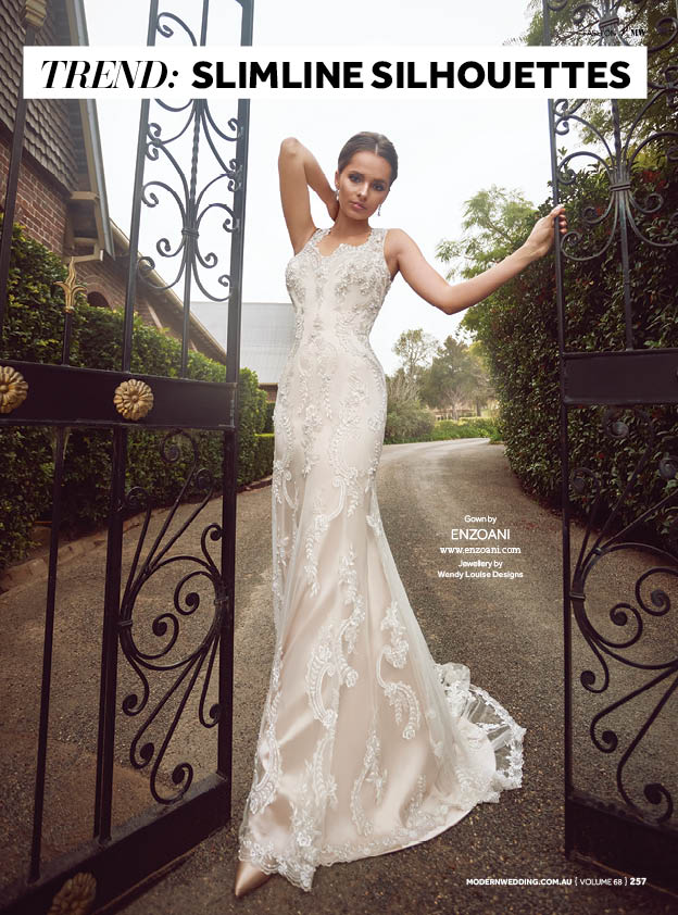 Keep it sleek with a slimline silhouette. This unassuming line is perfect for the confident, lo-fi bride.
