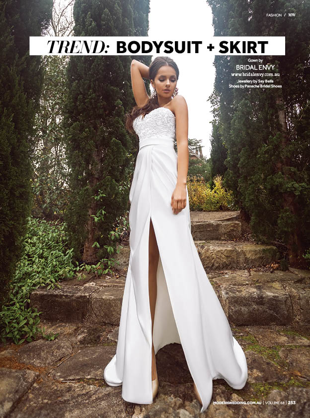 Designers are allowing brides to be more in control than ever with mix and match tops and skirts. We love a fitted bodysuit with a fit and flare bottom!