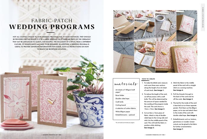 For those who have a penchant for paper, we demonstrate the art of marbling paper, and how to craft wedding programs, place cards, table numbers, confetti and paper flowers (from page 102).